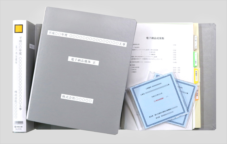 要領(調査・設計、工事、電気、機械等)を問わず、電子納品に関連する資料(報告書・図面データ)を提供していただき、各電子納品要領(案)に沿った電子データとして作成します。